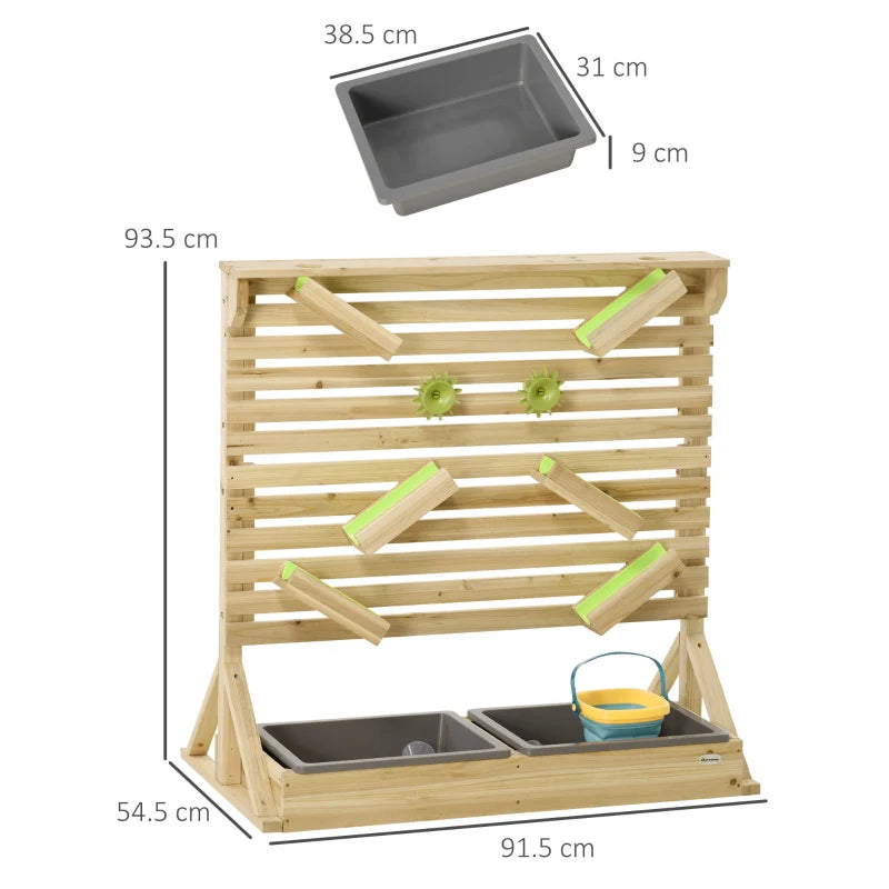 Transform your outdoor space into a mini beach, thanks to this Outsunny water-running playset. With two sections – for sand and water – children will enjoy creating waterfalls with the funnel, and sandcastles with the spatula and spoon. Overall, there are 18 toy accessories of the wooden sandpit, giving children different activates each time. It's a fun way to encourage problem-solving and creativity, allowing children to enter a magical world of their own.